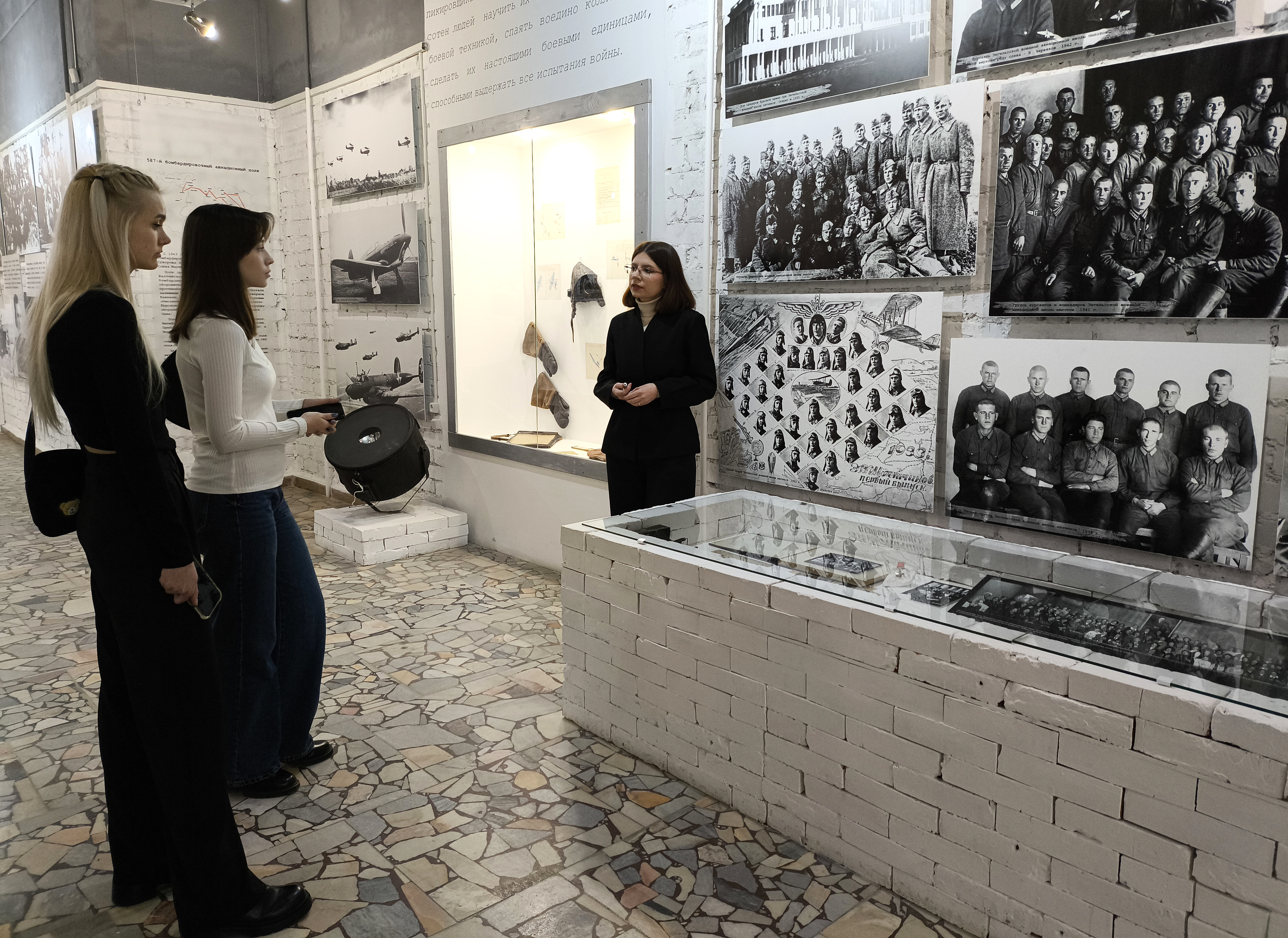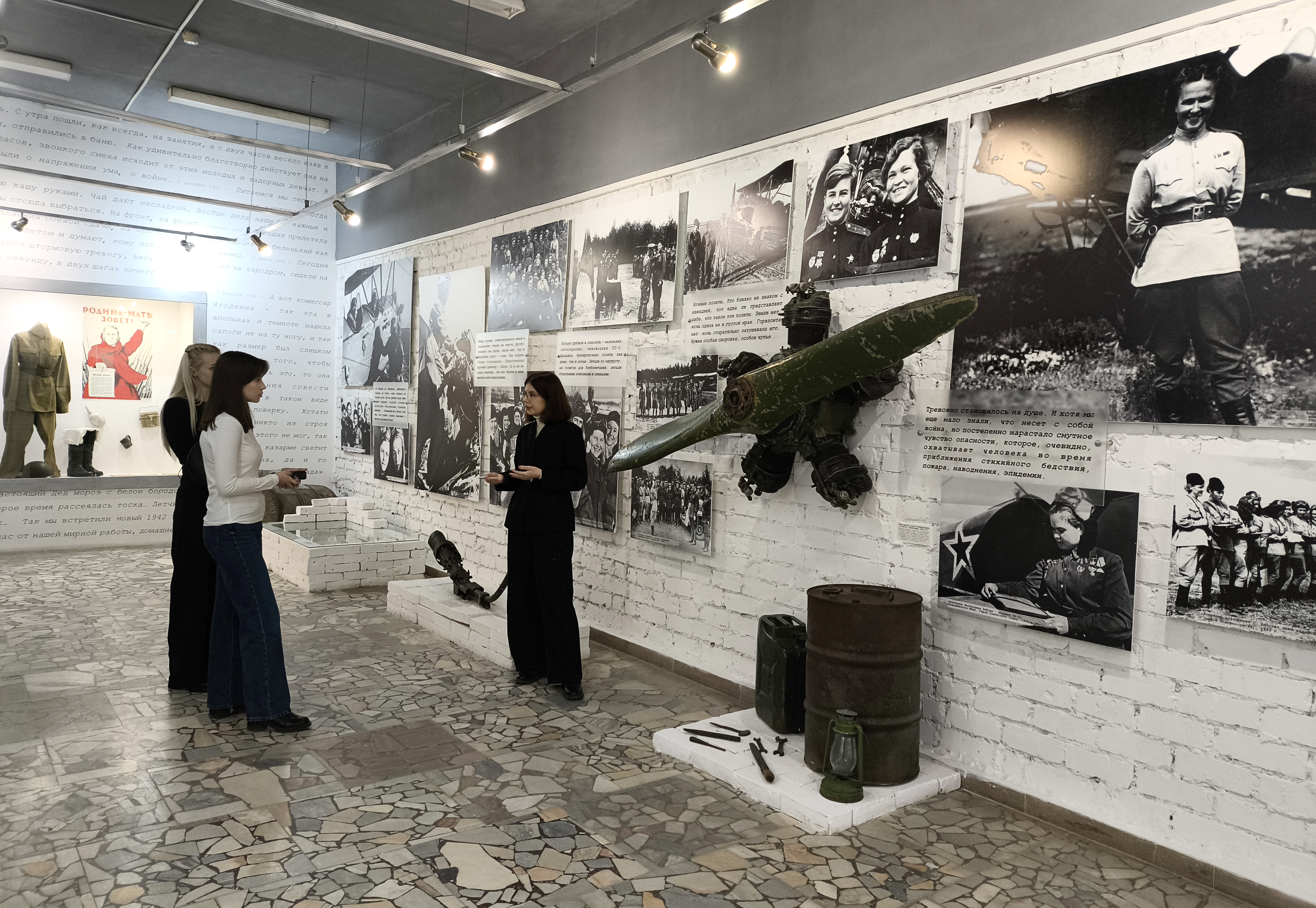 В рамках посещения раздела экспозиции гости музея познакомились с тематическим комплексом «Три полка - одна история», посвящённым послевоенному периоду жизни прославленных лётчиц.