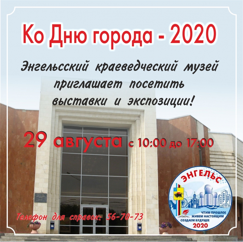 29 августа в рамках празднования Дня города Энгельса приглашаем вас в Энгельсский краеведческий музей.