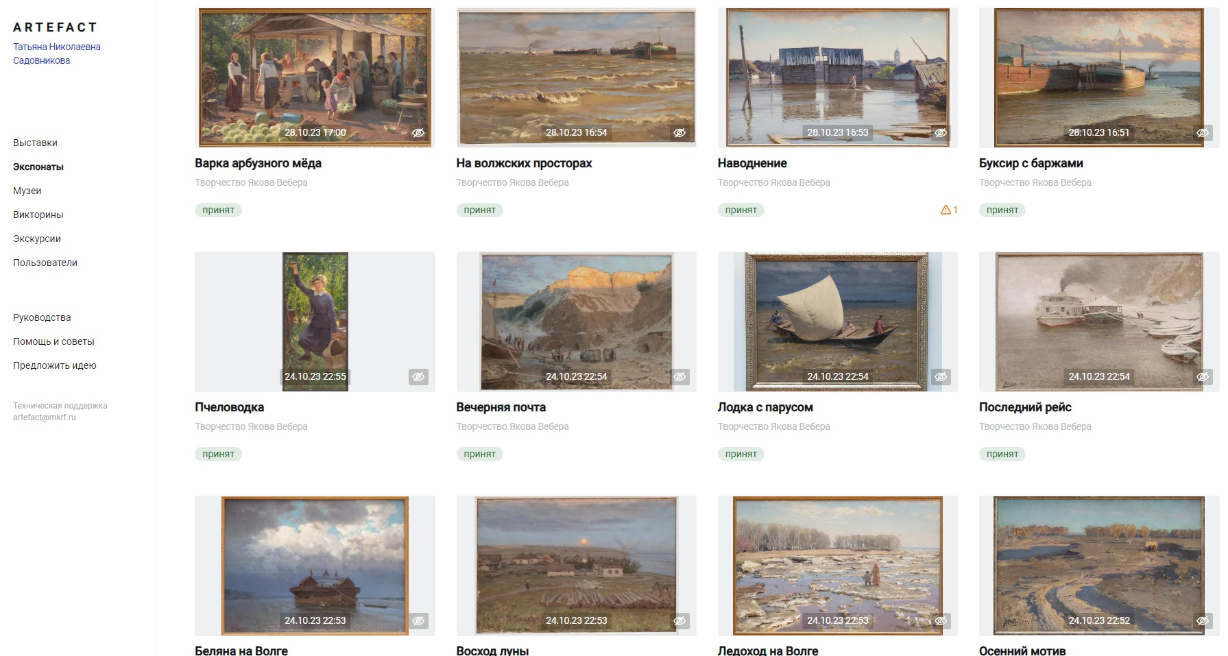 В настоящее время наша творческая команда работает над подготовкой материалов для аудио-гида. Нам приятно, что в составе единомышленников этого увлеченного процесса вместе с сотрудниками Энгельсского краеведческого музея работает и специалист из Нижегородского государственного художественного музея, искусствовед Вера Гордеевна Хорошилова, которая на протяжении многих лет профессионально занимается изучением наследия и биографии великого мастера волжского пейзажа Я. Вебера. В настоящее время Верой Гордеевной подготовлены текстовые аннотации и пояснения для ключевых «точек интереса» к художественным полотнам. Совместно со специалистами приложения Artefact данные материалы проходят цифровую обработку на платформе.