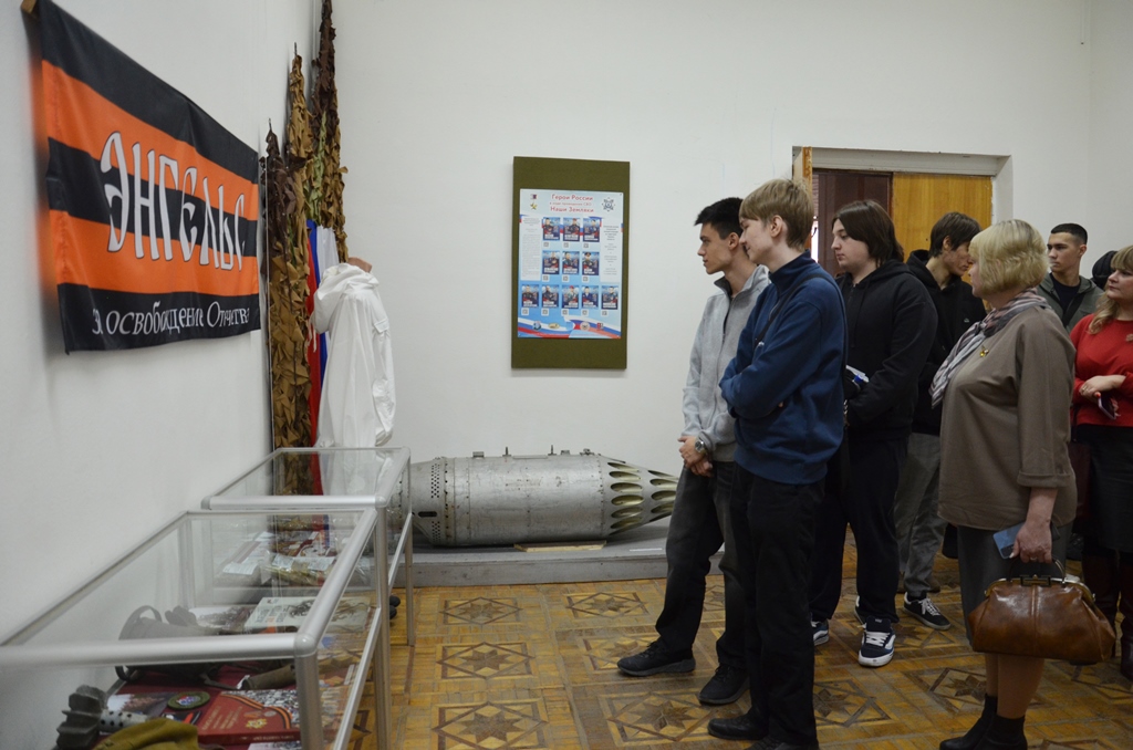 Старший научный сотрудник Энгельсского краеведческого музея Марина Сергеевна Маркина рассказала об истории появления памятной даты и о героях в разное время удостоенных высших военных наград. Также студенты узнали о героях Специальной военной операции: младшем лейтенанте Вячеславе Мозговенко, ценой своего здоровья спасшего товарищей. С замиранием сердца слушали о беспрецедентной операции «Поток», где наши бойцы совершили нечеловечески трудный марш, чтобы освободить от оккупации жителей Суджи. И, конечно, не смогли сдержать эмоций, узнав о мужестве 10-летнего Фёдора Симоненко, проявившего недетскую отвагу.